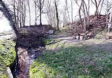 The source area of the Murr is located 3 km south of the city Murrhardt on the heights of the Murrhardter forest. At the southern outskirts of the hamlet Vorderwestermurr, a sign shows a spring box as "Murrursprung". Because of its strong and reliable discharge of two liters per second even in dry periods, it is regarded as main-source of the Murr, even if several small brooks near Vorderwestermurr and Fautspach lie higher and further from the confluence.[3][4]
