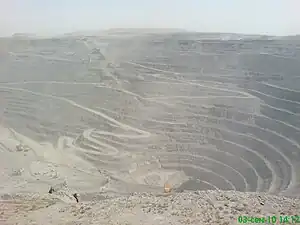 The Muruntau mine is one of the largest gold mines in Uzbekistan and in the world.[1] The mine is located in the mountains of Murintau in the south-west of the Kyzylkum desert, on the territory of the Tamdynsky district of the Navoi region of Uzbekistan.[1] The mine has estimated reserves of 71,400,000 ounces (2,020 t) of gold.[1]