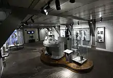 Pieces at display include: a gigantic microtome, the first heart-lung machine (prototype) by inventor Jacob Jongbloed (1948), the first kidney dialysis machine by inventor Willem Johan Kolff, X-ray equipment, an iron lung, galvanometer tools, a bow and arrow used to draw ultra thin quartz fibres (by shooting away a droplet of molten quartz), the original golden Nobel Prize medal from Willem Einthoven (for developing the first practical electrocardiogram in 1903)