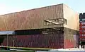 The building with its long, two-storey, rectangular structure and multi-coloured facade composed of 36,000 vertical ceramic louvres in 23 different coloured glazes, was created by Sauerbruch Hutton architects and is located next to the Pinakothek der Moderne in the Kunstareal. The building has three exhibition areas which are connected by stairs. All galleries (with the exception of the Media Suite) have white walls and wooden floorboards of Danish oak.