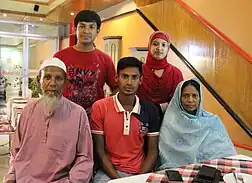 Mustafizur grew up in the small town of Satkhira in Khulna, Bangladesh.[19] He is the youngest of Abul Qasem Gazi and Mahmuda Khatun's six children.[90] His father is an enthusiastic fan of cricket.[15] Mustafizur's interest in cricket rose when he started practicing the game 40 kilometres (25 mi)