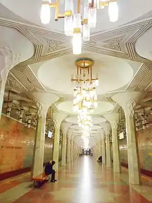 Mustaqillik Maydoni is a station of the Tashkent Metro on Chilonzor Line. The station was opened on 6 November 1977 as part of the inaugural section of Tashkent Metro, between October inkilobi and Sabir Rakhimov.[1] Prior to 1 November 1991 the name of the station was "V. I. Lenin Maidoni" ( "Vladimir Lenin Square").
