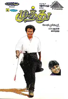 Muthu is the soundtrack album composed by A. R. Rahman for the 1995 Tamil-language film of the same name starring Rajinikanth and directed by K. S. Ravikumar. It is the first film where Rahman, Rajinikanth and Ravikumar worked together.[1][2] The album have six tracks in each with lyrics with lyrics by Vairamuthu.[3] The Hindi version is titled Muthu Maharaja and had lyrics penned by P. K. Mishra,[4] whereas the Telugu version of Muthu is penned by Bhuvana Chandra.[5] Recording of the songs took place at the composer's Panchathan Record Inn studio in Chennai. The soundtrack was released on 8 October 1995 under the Pyramid label.[3] The Telugu version of the soundtrack was released under Aditya Music and Saregama distributed the Hindi soundtrack.