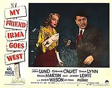 My Friend Irma Goes West is a 1950 American comedy film directed by Hal Walker and based on the radio show My Friend Irma. It stars the comedy team of Dean Martin and Jerry Lewis.[3] The film is a sequel to My Friend Irma (1949) and was released on May 31, 1950 by Paramount Pictures.