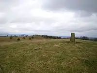 Trig on Mynydd y Glyn Looking ENE from the 389m summit of Mynydd y Glyn towards the hills to the west of Oswestry.