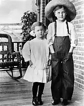 Loy spent her early life in Radersburg, Montana, a rural mining community approximately 50 miles (80 km)[16] southeast of Helena.[17][18] During the winter of 1912, Loy's mother nearly died from pneumonia, and her father sent his wife and daughter to La Jolla, California.[19] Loy's mother saw great potential in Southern California, and during one of her husband's visits, she encouraged him to purchase real estate there.[20] Among the properties he bought was land that he would later sell, at a considerable profit, to filmmaker Charlie Chaplin for his film studio there. Although her mother tried to persuade her husband to move to California permanently, he preferred ranch life and the three eventually returned to Montana. Soon afterward, Loy's mother needed a hysterectomy and insisted Los Angeles was a safer place to have it done, so she, Loy, and Loy's brother David moved to Ocean Park, where Loy began to take dancing lessons.[19] After the family returned to Montana, Loy continued her dancing lessons, and at the age of 12, Myrna Williams made her stage debut performing a dance she had choreographed based on "The Blue Bird" from the Rose Dream operetta[21] at Helena's Marlow Theater.[22]