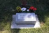 Loy died at age 88 on December 14, 1993, at Lenox Hill Hospital in Manhattan during surgery following a long, unspecified illness.[65] She had been frail and in failing health, which had resulted in her being unable to attend the 1991 Academy Awards ceremony, where she was to receive a lifetime achievement Oscar.[66] She was cremated in New York and her ashes interred at Forestvale Cemetery in her native Helena, Montana.[67][68]