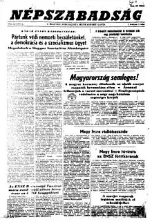 Népszabadság (Hungarian: [ˈneːpsɒbɒt͡ʃːaːɡ];[3] lit. 'Liberty of the People') was a major Hungarian newspaper which was formerly the official press organ of the Hungarian Socialist Workers' Party during the Hungarian People's Republic. Before its closure, Népszabadság was considered the de facto newspaper of record for Hungary.[4]
