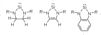 - 1 2 3 4 Denk, Michael; Green, Jennifer C.; Metzler, Nils; Wagner, Matthias (1994-01-01). "Electronic structure of a stable silylene: photoelectron spectra and theoretical calculations of Si(NRCHCHNR), Si(NRCH2CH2NR) and SiH2(NRCHCHNR)". Journal of the Chemical Society, Dalton Transactions (16): 2405. doi:10.1039/dt9940002405. ISSN 0300-9246.
