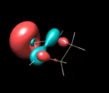 Natural Bond Orbital analysis of [HN-CH=CH-NH]Si: provides strong theoretical evidence of π electron delocalization. NBO calculations indicate a population of 0.54 electrons in the formally vacant Si 3py orbital (1.2 electrons would be expected in a pure 6 π-electron 5 atom ring). The saturated silylene has lower electron delocalization over the heteroallylic N-Si-N system with only 0.33 electrons on Si (versus 1.33 for perfect 4 electron shared among 3 atoms). No difference in charge sharing is seen in the σ-bond interaction between Si and N of each NHSi, this is also the case with NHCs. In spite of identical Si-N σ bonding, the unsaturated silylene has a lower charge separation in its Si-N bond than the saturated analog: for the unsaturated analog, Si has a charge of +0.87 and each N -1.00, while the saturated has a charge of +1.05 on Si and -1.12 on N. These data show that the stabilization and bond difference between the backbone types is entirely due to π interactions. For comparison, in an analogous way, germylenes have a charge near +1 at the germanium while cabenes have close to no net charge on the carbenic carbon. Calculations show, upon coordination to Group 11 metal chlorides (e.g. NHSi-CuCl) Si 3py density, N-Si bond density, and Si atom charge all increase. The change is the result of Si's sigma donation to the metal, which causes the Si 3p orbital to draw electron density from the ring. In this manuscript they calculate CuCl and AgCl back-donation to Si to be about 4.5 weaker than the σ interaction. Interestingly, for all three Group 11 metals, the NHSi in question is a better σ donor and π acceptor than its germylene and carbene analogs.[10][8]