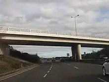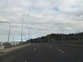 On 12 March 2010, the NRA confirmed that both the Bandon Road Roundabout and the Sarsfield Road Roundabout would have flyovers built, with traffic travelling on the Cork South Ring Road being able to avoid both roundabouts when staying on the mainline.[3] While minor work on this scheme had already commenced in 2008, full construction started on 6 July 2011 and was completed in July 2013.[4] As well as two flyovers being built, the dual carriageway between both roundabouts will be upgraded and straightened with two access roads being built on either side for local access.