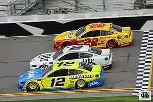 Blaney started the 2022 season with a fourth-place finish at the 2022 Daytona 500. Despite scoring no wins in the first 13 races, he stayed consistent with four top-fives and six top-10 finishes. He also won the 2022 NASCAR All-Star Race.[18] Despite being involved in a multi-car crash on lap 31 of the regular season finale at the Daytona night race, Blaney rallied to finish 15th to clinch the 16th and final Playoff spot of the season, beating Martin Truex Jr. by three points. Blaney was eliminated following the Round of 8 after finishing third at Martinsville.[19] Despite being winless, he finished the season eighth in the points standings.[20]