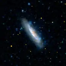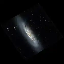 NGC 4522 is an edge-on spiral galaxy located about 60 million light-years away within the Virgo Cluster[3] in the constellation Virgo.[4] NGC 4522 is losing its molecular gas though ram-pressure stripping as it plows though the cluster at a speed of more than 10 million kilometres per hour.[5] The galaxy was discovered by astronomer John Herschel on January 18, 1828.[6]