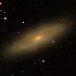 NGC 4586 is a spiral galaxy located about 50 million light-years away[2] in the constellation Virgo.[3] The galaxy was discovered by astronomer William Herschel on February 2, 1786.[4] Although listed in the Virgo Cluster Catalog,[5] NGC 4586 is considered to be a member of the Virgo II Groups which form a southern extension of the Virgo cluster.[6][7] NGC 4586 is currently in the process of infalling into the Virgo Cluster and is predicted to enter the cluster in about 500 million years.[8]