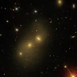NGC 7236 is an interacting lenticular galaxy located in the constellation Pegasus. It is located at a distance of about 300 million light years from Earth, which, given its apparent dimensions, means that NGC 7236 is about 150,000 light years across.[1] NGC 7236 forms a pair with NGC 7237 and is a radio galaxy. It was discovered by Albert Marth on August 25, 1864.[3]
