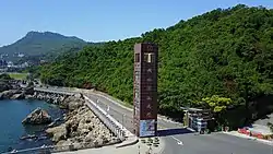 Located alongside the Kaohsiung Harbor and a military base, the NSYSU campus is surrounded on three sides by mountains and also faces the open waters of the Taiwan Strait, thus making it a natural fortress. The Sizihwan beach (one of Eight Views of Taiwan) is located right on campus which makes the university campus a very attraction location in Taiwan.[26] The environmental characteristics are unique in the country, including the nature of the montane ecosystem, marine ecosystem, and coral reefs. In addition to the university buildings on the campus, there is also a seaside resort, a stadium constructed by land reclamation, Sizihwan Tunnel, and historic places remaining from the Japanese ruling era.