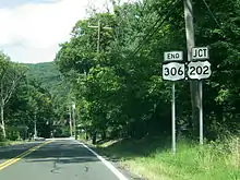 New York State Route 306 (NY 306) is a north–south state highway in western Rockland County, New York, in the United States. NY 306 runs from NY 59 in the hamlet of Monsey to U.S. Route 202 (US 202) in Ladentown, on the western boundary of the village of Pomona. The road is currently 5.33 miles (8.58 km) long; however, it originally extended south to the New Jersey state line and north to Willow Grove Road (former NY 210) when it was assigned as part of the 1930 renumbering of state highways in New York.