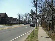 In Queens, NY 27A was routed on Rockaway, Baisley, and Merrick Boulevards to the eastern borough line, where it continued eastward into Nassau County on the original alignment of NY 27 on Merrick Road.[7] The route remained on Merrick Road to the Suffolk County line, where it joined its original alignment. NY 27 and NY 27A crossed paths in Rockville Centre, where the Sunrise Highway intersected Merrick Road.[8]
