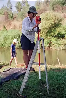In 1989, Goren-Inbar initiated her excavation project at the Acheulian site of Gesher Benot Ya'aqov (GBY), located on the banks of the Jordan River south of the Hula Valley. The site, excavated during seven seasons from 1989 to 1997, is dated to 780,000 years before present by the presence in its layer of the last paleo-magnetic reversal.[2] The primary finds at GBY include a butchered, straight tusk elephant, indicating the early hominins’ ability to process large game.[3] In addition, a minimum of seven fallow deer carcasses exposed in a single layer of GBY Area C evidence the large game hunting of numerous animals. The cut marks made on the bones by the flint knives of the site's butchers demonstrate that they used a butchering method similar to that of modern humans.[4] A rich and unique assemblage of bifacial tools (handaxes and cleavers) suggest an African origin for the stone tool tradition of the site's knappers. The tools were shaped from basalt, flint, and limestone, evidence of the high cognitive abilities of the inhabitants of GBY.[5] The site's findings also include the earliest evidence for systematic, controlled use of fire outside of Africa.[6]