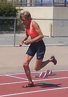 Nadine O'Connor (born March 5, 1942) is a retired mathematics teacher and a world record setting, hall of fame Masters Track and Field athlete. While she specializes in the pole vault, due to her athletic training, she also holds the World Masters Athletics world records in the 100 metres, 200 metres,[1] the Indoor 60 metres and 200 metres.[2] She also holds the American record in the long jump, 80 metre hurdles, 300 metre hurdles and pentathlon.[3]