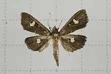 - 1 2 3 Nuss, Matthias; Landry, Bernard; Mally, Richard; Vegliante, Francesca; Tränkner, Andreas; Bauer, Franziska; Hayden, James; Segerer, Andreas; Schouten, Rob; Li, Houhun; Trofimova, Tatiana; Solis, M. Alma; De Prins, Jurate; Speidel, Wolfgang (2003–2021). "Global Information System on Pyraloidea (GlobIZ)". Retrieved 2021-02-02.