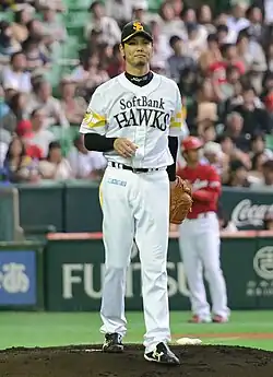 Nagisa Arakaki (新垣 渚, Arakaki Nagisa, born May 9, 1980 in Naha, Okinawa) is a former Japanese professional baseball player. He is currently with the Tokyo Yakult Swallows in Japan's Nippon Professional Baseball. Despite having one of the best fastballs and sliders of anyone in the league, Arakaki has battled control problems and injuries throughout his career. In 2007, Arakaki set the NPB record for most wild pitches in a season with 21, breaking Kazuhisa Ishii's record.