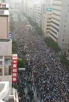 The Naha Tug of war (那覇大綱挽) is an event at the annual festival held in Naha, Okinawa, Japan. Its roots may be traced back to the 17th century.[1] Held on Route 58, it is a battle between the East and West teams.