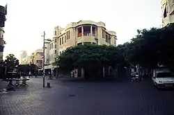 In the 1920s, a decade of repeated anti-Jewish Arab riots in Jaffa, many Jews left that city and moved to a constantly growing Tel Aviv.[1] At this time Nahalat Binyamin Street became Tel Aviv's main commercial thoroughfare.[1] The houses underwent a process of transformation, additional storeys being added and the shops occupying the bottom floor.[1] The residential buildings of the neighbourhood had been initially planned to be surrounded by gardens,[8] and were built on raised platforms or podiums lining the pavements.[6] Also in the 1920s, the dirt road called Nahalat Binyamin was paved, the workers being mostly women.[3]