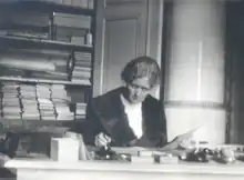 In opposition to the utilization of scientific warfare, Sahlbom published an article, titled "Giftgasvapnet" (Poison Gas Weapons), in 1925. She contended that employing scientific research to develop chemical weapons was reductive because war had a significant impact on civilians. The IKFF endorsed Sahlbom's article. In 1929 the IKFF conducted a conference in Frankfurt, where alternative strategies of warfare were discussed.[7][10][11] In the 1930s, Greta Engkvist and Sahlbom traveled throughout eastern and southern Europe to advocate the WILPF.[12] Sahlbom was appointed as the section president of Sweden's WILPF in 1935.[1]