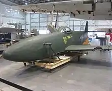 After the war, airframes 3, 4, and 5 (and possibly other partial airframes) were brought to the U.S. for study. Today, two examples survive in the National Air and Space Museum: The first is a Kikka that was taken to the Patuxent River Naval Air Base, Maryland for analysis. This aircraft is very incomplete and is believed to have been patched together from a variety of semi-completed airframes. It is currently still in storage at the Paul E. Garber Preservation, Restoration and Storage Facility in Silver Hill, Maryland. The second Kikka is on display at the NASM Udvar-Hazy Center in the Mary Baker Engen Restoration Hangar. Correspondence in 2001 with Japanese propulsion specialist Kazuhiko Ishizawa theorized that Nakajima constructed the Museum’s Kikka airframe for load testing, not for flight tests. This may explain why the engine nacelles previously fitted on the Museum’s Kikka airframe are too small to enclose the Ne-20 engines.[1] However, Ishizawa later stated that a limited survey at the Paul E. Garber facility concluded that this Kikka may not be a strength-tester due to the presence of wiring, hydraulics and controls.[6] Furthermore, Susumu Watanabe, who was in charge of engine outfitting for the Kikka, recalled that the engine nacelles of the strength tester were the same as the standard aircraft, and that the strength tester was stressed until failure.[7] Based on this information, the mock nacelles were potentially added for display purposes after transit to the United States.
