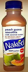 In addition to juice flavor variants, since 2006 additional Naked Juice versions have been produced with a focus on specific health aspects such as digestion, protein and reduced-caloric content.[18] In 2007, Naked Juice Probiotic was introduced, having been represented as the first 100-percent juice smoothie to contain probiotics for the aid in digestion.[19] A protein-focused line of Naked Juice smoothies (marketed as protein zone) was first introduced in the early 2000s, with the addition of mango and double berry flavors in 2009.[20] Two reduced-calorie Naked Juice smoothies were introduced in 2010: tropical and peach guava. Both of these products contain coconut juice, which is naturally lower in caloric content in comparison to other fruits.[21]