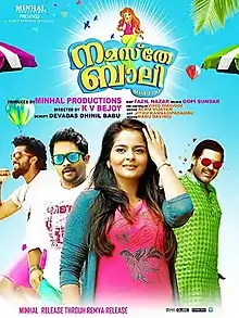 Namasthe Bali is a 2015 Malayalam language film produced by Minhal Mohammed Ali under the banner of Minhal Productions. The film stars Roma Asrani in the lead role along with Aju Varghese, Devan, Neena Kurup, Balu Varghese and Noby Marcose. The film is directed by K V Bijoy. The music is composed by Gopi Sundar. The screenplay is based on a story written by Dhinil Babu and Devadas. The film was a comeback for Roma to the Malayalam film field after a three year gap.[1] The film is also considered as a genre similar to the Bollywood film Queen based on the storyline.