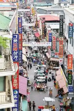 In 1950, the Korean War began, and most of the 250 shops in the market were destroyed.[17] When vendors returned to the market in June 1951, the area had been cordoned off by barbed wire. Activities restarted with around 100 stalls and makeshift stores in the Bukchang-dong area. By 1953, 150 shops and 500 street stalls were in the market.[17] At the time, it sold a large amount of controband and military supplies from the U.S. military bases. Consequently, it was nicknamed the "Dokkaebi Market", after a mischevous goblin-like creature from Korean folklore.[17]