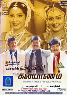 Namma Veetu Kalyanam (transl. Our Family Marriage) is a 2002 Indian Tamil-language comedy drama film written and directed by V. Sekhar. The film stars Murali, Meena, Vadivelu, Vivek and Vindhya, with Rajeev, Livingston and Manorama in supporting roles. The film released on 20 September 2002 to positive reviews from critics.