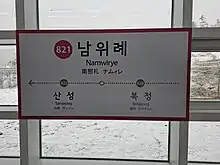 Namwirye station (Korean: 남위례역) is an infill railway station on Line 8 of the Seoul Metropolitan Subway system.[1][2] It opened on December 18, 2021. This station was constructed for Wirye New Town, but it is not located inside of Wirye.