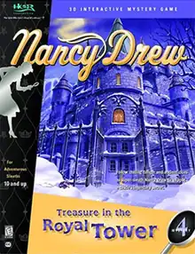 Treasure in the Royal Tower is the fourth installment in the Nancy Drew point-and-click adventure game series by Her Interactive.[1][2][3][4] The game is available for play on Microsoft Windows platforms. It has an ESRB rating of E for moments of mild violence and peril. Players take on the first-person view of fictional amateur sleuth Nancy Drew and must solve the mystery through interrogation of suspects, solving puzzles, and discovering clues. There are two levels of gameplay, Junior and Senior detective modes, each offering a different difficulty level of puzzles and hints, however neither of these changes affect the actual plot of the game. The game was loosely based on a book titled The Treasure in the Royal Tower (1995).[5][6]