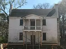The Nancy Jones House was built on a 2,000-acre (810 ha) plantation on Chapel Hill Road in 1803 by Nathaniel Jones, known as Nathaniel Jones of Crabtree to differentiate him from Nathaniel Jones of White Plains who lived nearby.[2][4] Jones' son Henry inherited the house in 1809.[5] Henry married Nancy Ann Jones, daughter of Nathaniel Jones of White Plains, in 1813.[4] Henry and Nancy started a stagecoach stop and a tavern out of the home which became a landmark on the route between the capital city Raleigh and Chapel Hill, home to the University of North Carolina.[4][6] Maps of the era refer to Jones Ordinary.[4]