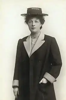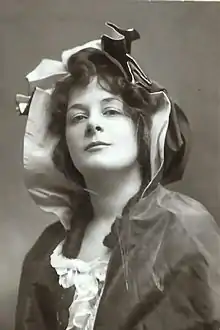 In 1905, Comstock toured as Grace Whitney with Raymond Hitchcock in the Richard Harding Davis farce The Galloper, and the following year appeared in the play’s January 6 New York debut at the Garden Theatre. She returned to London in May 1906 to play Shirley Rossmore in Charles Klein’s The Lion and the Mouse at the Duke of York's Theatre, and afterward, spent the next few seasons with William Collier, Sr. in productions of George Nash’s On the Quiet and Collier’s popular Caught in the Rain. On September 7, 1908, Comstock played the title role in the Louis Lovell play Jet at the Columbia Theatre in Washington, D.C. The following year, she co-starred with Robert C. Hilliard as The Mother in a long run of the Porter Emerson Browne tale A Fool There Was from the Rudyard Kipling poem The Vampiers.[9] In December 1912, with the National Federation of Theatre Clubs, Comstock appeared at the Berkeley Lyceum, New York, as Gertrude in the Ethelyn Emery Keays play His Wife By His Side.[4][5]
