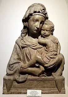 A number of smaller works before 1410 are attributed to him, especially some of a type of half-length Virgin and Child in relief or free-standing, of which many versions survive in various materials, and for which Lorenzo Ghiberti may have produced the prototypes, leading to them sometimes being called the "madonna ghibertiana", with Types A and B, depending on the pose of the Virgin's hands.[10]