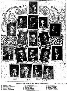 She graduated in 1887 from Los Angeles High School on Poundcake Hill. More than ten years after graduation from high school, together with her husband, she decided to study medicine and enrolled in pre-medical courses at the University of Southern California. She graduated in 1900, a pioneer in this field in California, in the same class of her husband, and they became physicians and surgeons.[2][3][4]