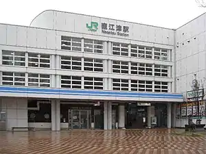 Naoetsu Station (直江津駅, Naoetsu-eki) is a railway station in the city of Jōetsu, Niigata, Japan, jointly operated by East Japan Railway Company (JR East) and the third-sector railway operator Echigo Tokimeki Railway.