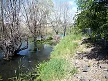 The Napa River watershed encompasses approximately 426 square miles (1,103 km²). Larger tributaries, such as Dry, Conn, and Soda creeks, show signs of recent incision and have graded to the incised current level of the mainstem Napa River. In some cases, smaller tributaries cutting across the valley floor have not fully adjusted to the lowered level of the mainstem and are elevated at their confluence with the mainstem, forming potential barriers to upstream fish migration. Several large dams were built between 1924 and 1959 on major eastside tributaries (Conn, Rector, Milliken, and Bell dams) and the northern headwaters of the Napa River (Kimball Dam). In addition, many smaller dams can be found throughout the watershed.[6] These numerous dams are impassable barriers to salmon and steelhead seeking their historic spawning grounds.