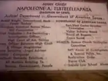 High Chief Napoleon A. Tuiteleleapaga, Bachelor of Laws.