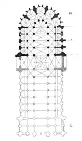 Plan by Viollet-le-Duc, showing in black the actual structure and in grey his suggestion of some of the areas not built