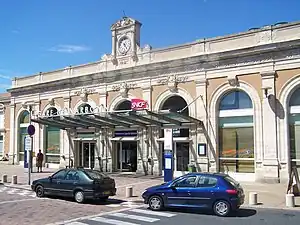 Narbonne is a railway station in Narbonne, Occitanie, France. The station opened on 22 April 1857 and is on the Bordeaux–Sète railway and Narbonne–Portbou railway lines. The station is served by TGV (high speed), Intercités (long distance, also night train) and TER (local) services operated by the SNCF. The line was electrified through Narbonne in 1935.