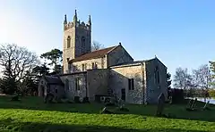The large 18th-century Narford Hall built by Andrew Fountaine, art collector and amateur architect, is nearby.[2][3] Giovanni Antonio Pellegrini's decorations were removed from Burlington House in London by 1727 and survive at Narford Hall. Andrew Fountaine (1918–1997) who was a founder member of the National Labour Party and deputy leader of the British National Front lived at the hall.