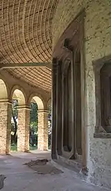 Narga Selassie was constructed in the classic round architectural tradition of the churches in the Lake Tana area, with the usage of stone both in the peristylium around the church and in the compound walls.