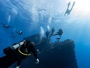 ![]() Divers conduct a training exercise on the wreck of the Nashua in 2022 | |