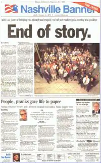 - 1 2 3 "Nashville Banner prints its own true 'final edition'". The Jackson Sun. Jackson, Tennessee. February 21, 1998. p. 6. Retrieved November 4, 2017 – via Newspapers.com.
