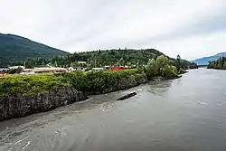 The Nass River is a river in northern British Columbia, Canada. It flows 380 km (240 mi) from the Coast Mountains southwest to Nass Bay, a sidewater of Portland Inlet, which connects to the North Pacific Ocean via the Dixon Entrance. Nass Bay joins Portland Inlet just south of Observatory Inlet.[7][8]